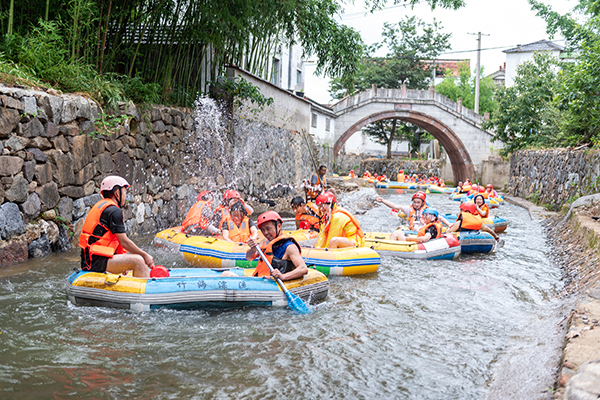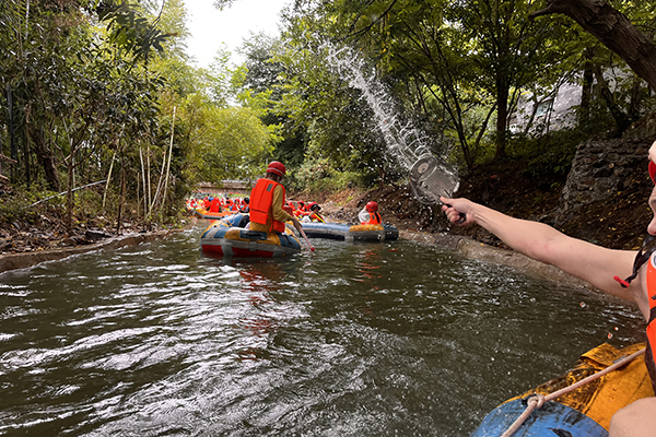 在享用豐盛的午餐后,午后,我們乘坐大巴車前往竹海漂流,迎接更為刺激的漂流活動。穿上救生衣,坐上漂流艇,我們仿佛化身成了勇敢的探險(xiǎn)家。隨著水流的起伏,漂流艇時(shí)而飛速下滑,時(shí)而緩緩漂流,我們的心情也跟著起伏不定,既緊張又興奮。