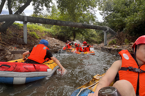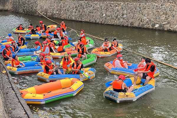 漂流過程中,趣事連連。有的同事因?yàn)樗魈?,不小心“翻船”,引得大家一陣歡笑;有的則是因?yàn)樘^緊張,劃船的動作顯得有些笨拙,但正是這些小插曲,讓我們的漂流之旅更加充滿了歡聲笑語。