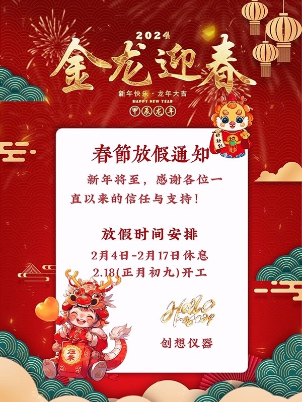 2024年新春佳節(jié),創(chuàng)想儀器對今年的春節(jié)放假作以下安排: