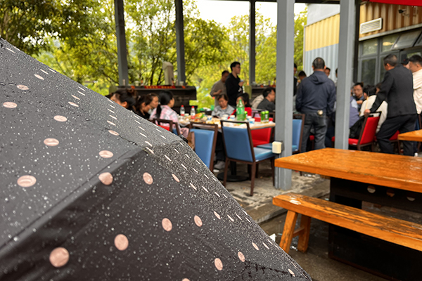 同事們圍坐在一起,分享著美食與歡笑。雨水打在樹葉上,發(fā)出沙沙的聲響,仿佛是大自然的和聲,為我們的聚會(huì)增添了幾分浪漫與詩(shī)意。雨水似乎也被我們的歡樂(lè)感染,輕輕地拍打著地面,仿佛在為我們鼓掌。