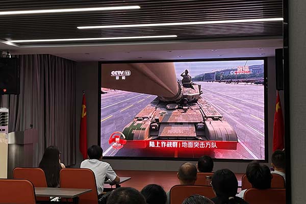 上午9時(shí),閱兵式正式開始。當(dāng)嘹亮的國(guó)歌聲響起,全體員工自發(fā)起立,齊聲高唱,莊嚴(yán)的氛圍感染著現(xiàn)場(chǎng)每一個(gè)人。分列式上,中國(guó)人民解放軍將士們步伐鏗鏘、意氣風(fēng)發(fā);新型武器裝備依次亮相,展現(xiàn)出現(xiàn)代化國(guó)防力量的強(qiáng)大實(shí)力;一個(gè)個(gè)震撼人心的畫面,讓在場(chǎng)員工心潮澎湃,民族自豪感油然而生。閱兵儀式令人心潮澎湃,不僅增強(qiáng)了民族自豪感,也更深刻體會(huì)到和平的珍貴與奮斗的意義。
