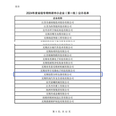 無錫創(chuàng)想分析儀器有限公司榮膺2024年度省級(jí)專精特新企業(yè)